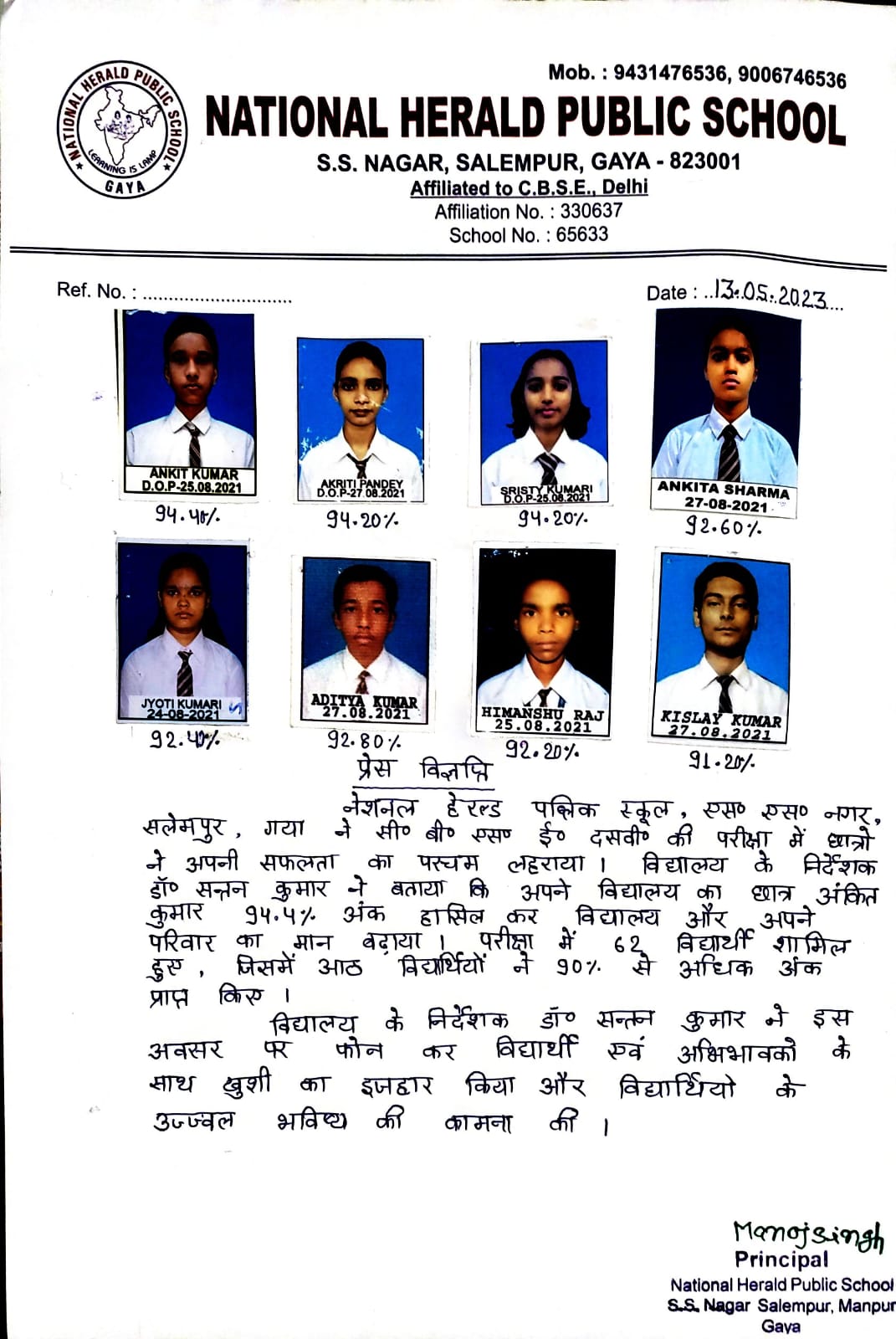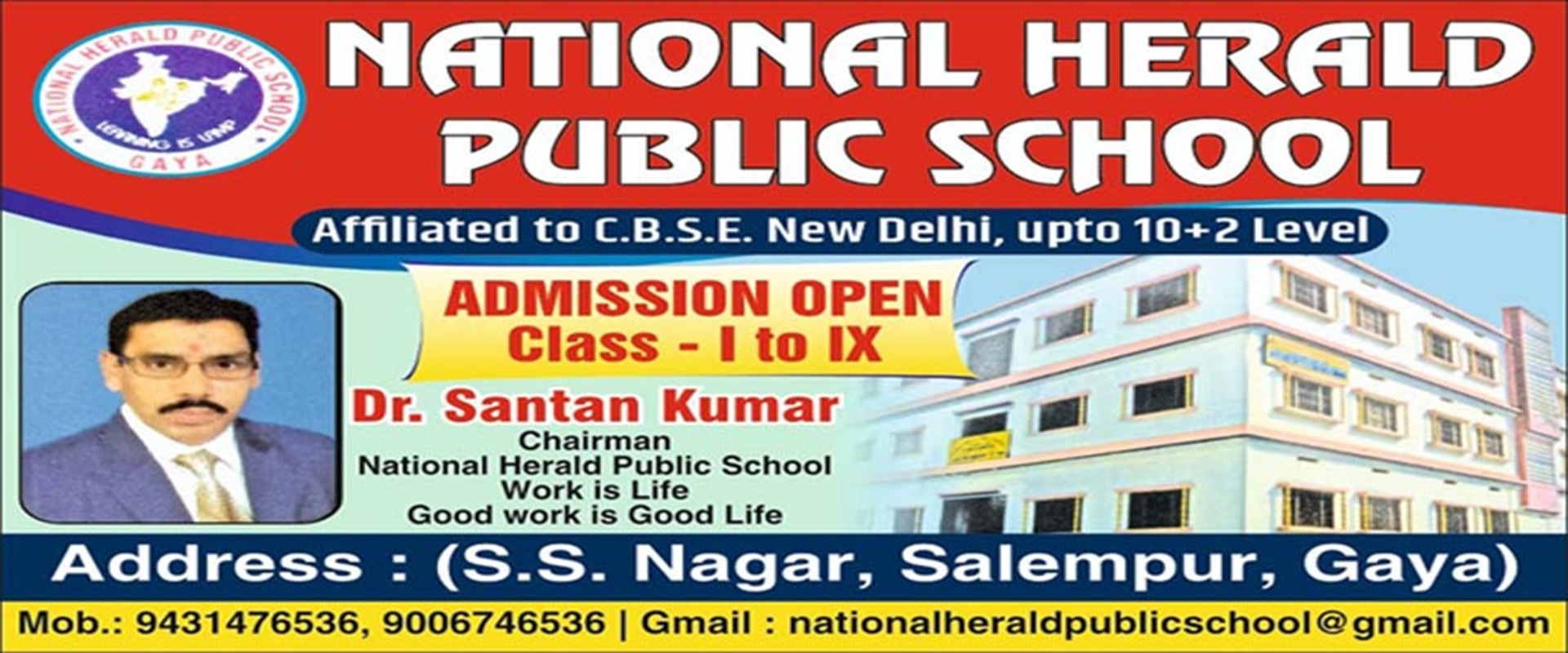 National Herald Public School is Affiliated to CBSE, Delhi and Affiliation No is 330637 upto Xth Class. National Herald Public School was established in the Year 2012 to upbring and upgrade the educational status in learning and in fields like Sport, Culture and literary activity. National Herald Public School under the banner of Tathagat education society to bring out well qualified teachers. The school has spacious building with all the required building with all the required infrastructure to conduct the school. The School is located in the lap of nature at S. S. Nagar, Gaya. The medium of instruction is English, Special care for fluency and accuracy (Spoken or written) in English language with due importance of Hindi, as a national language."Do not fly. Look not far means or failure. Join yourself to the perfectly unselfish will and work on . know that the mind which is born to mcceed joins itself to a determind will and perseverer........ Like in the midest of the battle of life. Any one can keep calm in the cave or when asleep. Stand in the tlie which and madness of action and reach the centre if you have found the centre you cannot be moved." Swami Vevekanand.